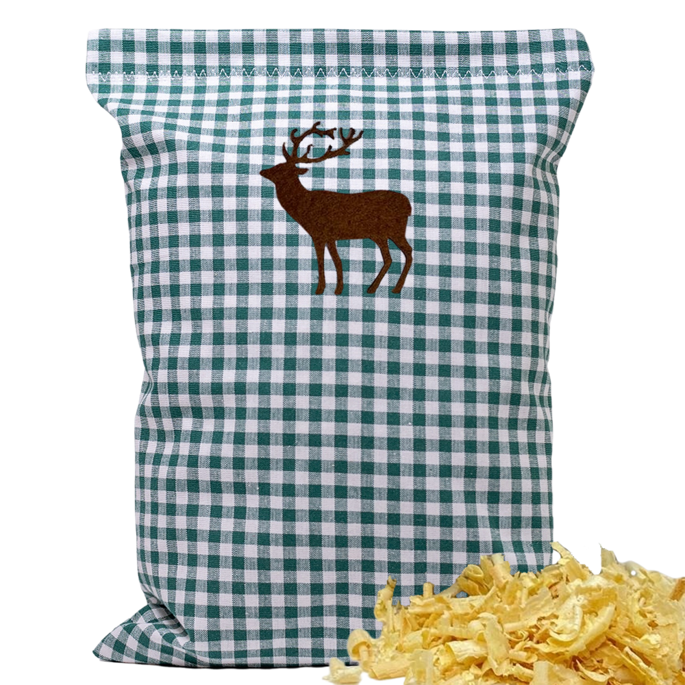 Zirbenkissen grün/weiß kariert - Hirsch-Motive - 30x20 cm