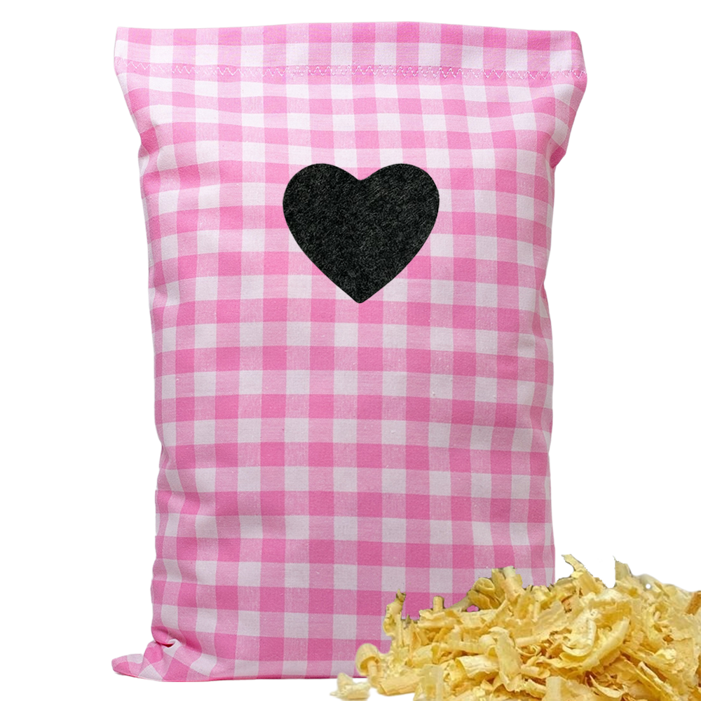 Zirbenkissen rosa/weiß großkariert - Herz-Motive - 30x20 cm