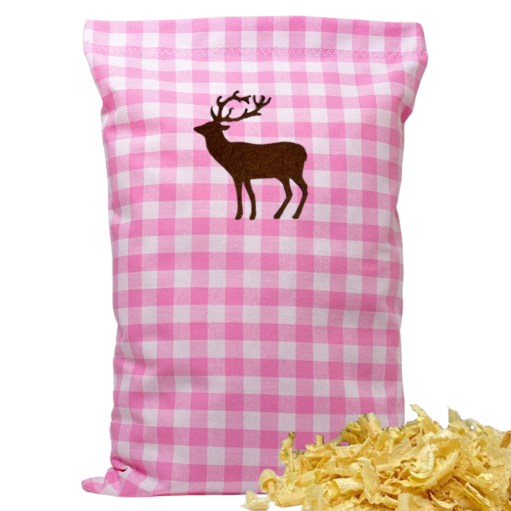 Zirbenkissen rosa/weiß großkariert - Hirsch-Motiven - 30x20 cm