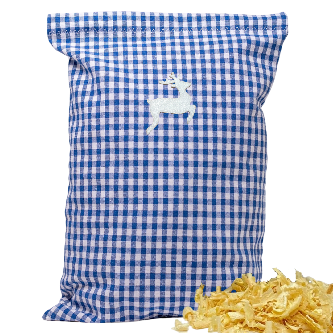 Zirbenkissen blau/weiß kariert - Reh weiß - 30x20 cm